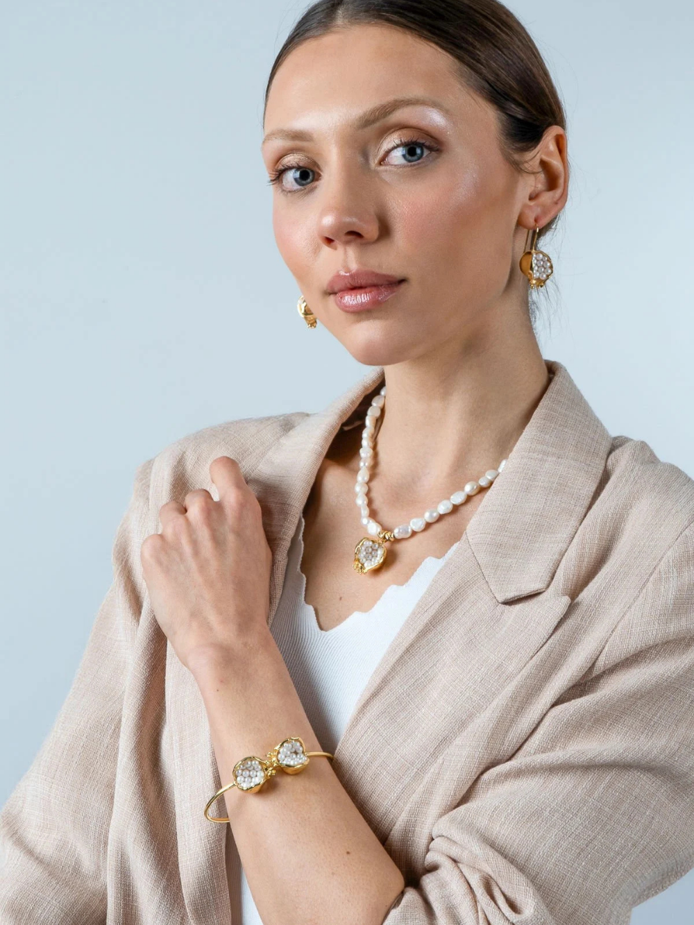 The White Pearl Pomegranate Bracelet is a graceful and meaningful accessory inspired by the powerful symbolism of the pomegranate, representing abundance, fertility, and feminine energy. Adorned with pure white pearl accents, this timeless design combines elegance with simplicity, making it perfect for any occasion.